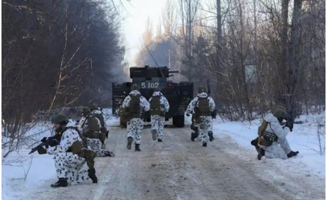 Lực lượng Vệ binh Quốc gia Ukraine đang chuẩn bị cho tình huống bị tấn công. Ảnh AP