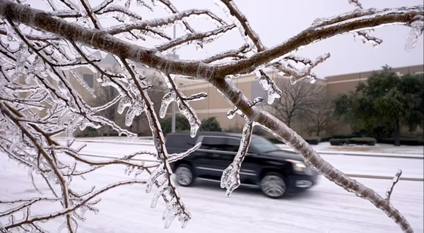 Nhiệt độ lạnh cóng làm đóng băng nước trong nhựa cây, gây ra trọng lượng dư thừa dọc theo các nhánh và làm cây đổ xuống. Ảnh: NBCDFW