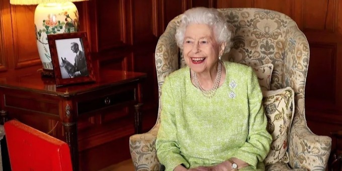Ảnh chân dung của Nữ hoàng Anh Elizabeth được nhiếp ảnh gia Chris Jackson chụp tại Saloon, cung điện Sandringham House hồi đầu tuần trước và được công bố ngày 6/2. Trong ảnh, bà cười tươi, mặc váy vải tuýt màu xanh lá cây do Angela Kelly thiết kế, ve cài áo hình lá thường xuân đính kim cương là quà sinh nhật năm 21 tuổi do mẹ tặng.