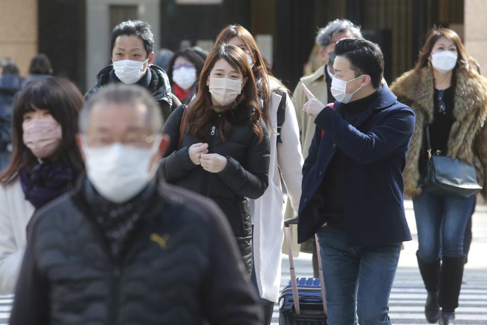 Những người đi bộ đeo khẩu trang trên một con phố ở Tokyo, Nhật Bản vào ngày 7/2. Ảnh: AP.