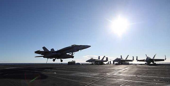 Pháp cũng đã điều tàu sân bay Charles de Gaulle để sát cánh cùng USS Harry S. Truman và hàng không mẫu hạm Cavour của Italy trong đòn "nắn gân" Nga.