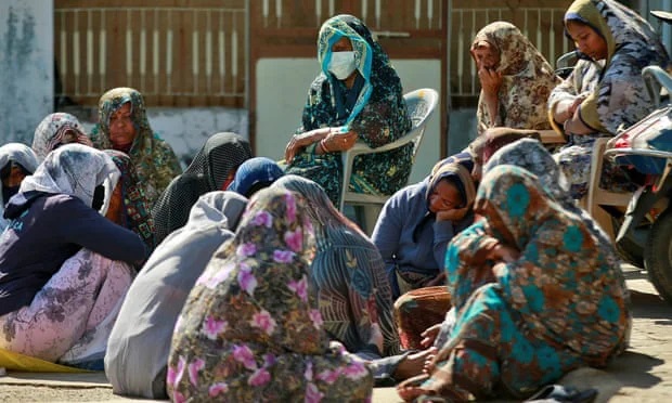 Người thân của gia đình Patels bàng hoàng trước sự mất mát này tại nhà riêng của gia đình họ ở Dingucha, Ấn Độ. Ảnh: Reuters.