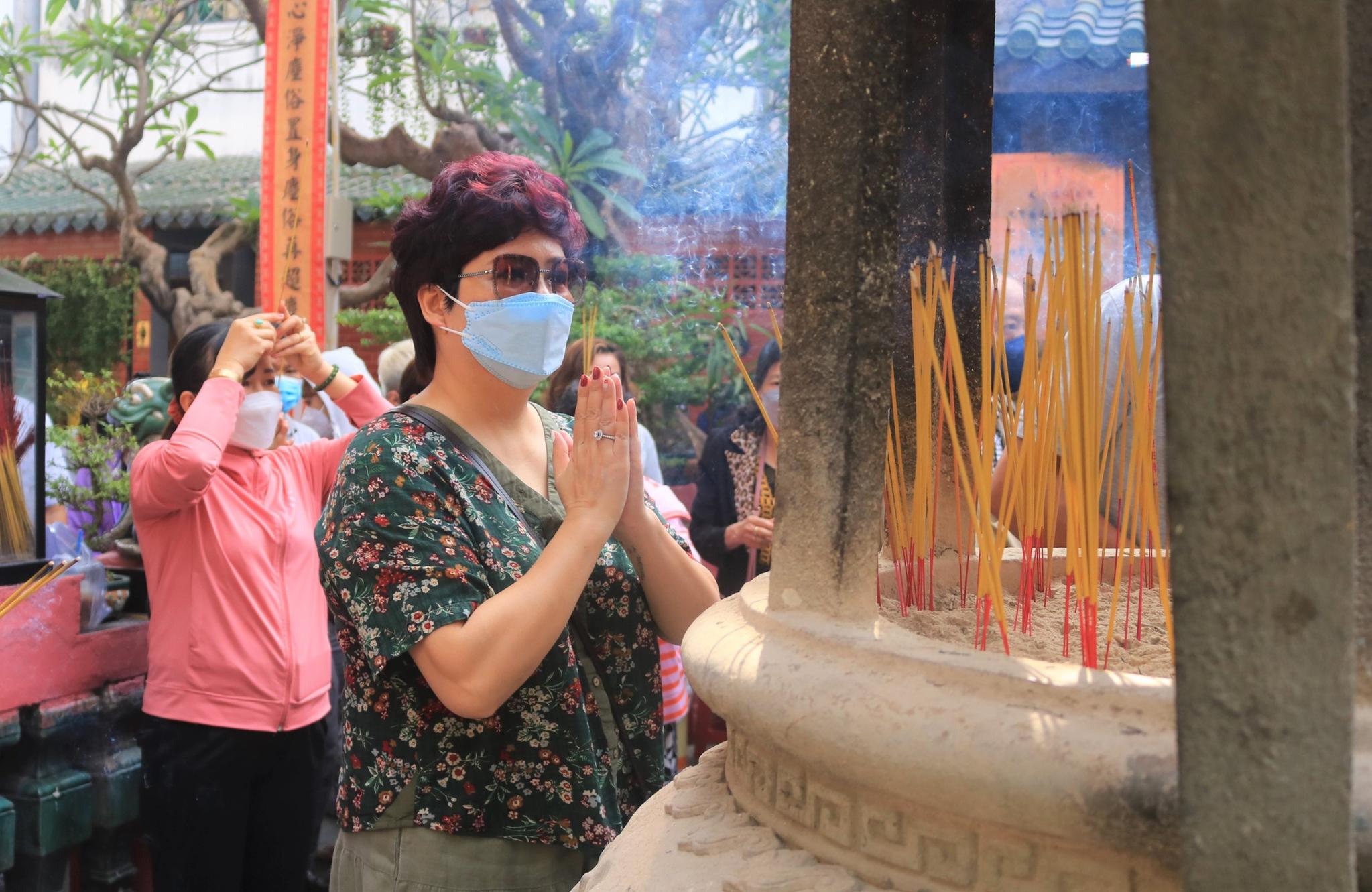 Anh Lê Hoàng Tuấn (30 tuổi, ngụ Q.Tân Phú) hơn 8 giờ 30 phút sáng đã cùng 2 người bạn có mặt tại chùa. Anh cho biết vía Ngọc Hoàng là truyền thống của những người Hoa như anh, vì vậy anh rất xem trọng nên hầu như năm nào cũng ghé đây để cầu nguyện. Cũng như mọi người, sau khi trải qua đợt dịch Covid-19 vừa rồi, anh cũng chỉ cầu mong sự bình an cho bản thân, gia đình và tất cả mọi người. "Mong cho dịch bệnh sớm tiêu tan để người người, nhà nhà đều sống an lành, hạnh phúc", anh nói thêm.