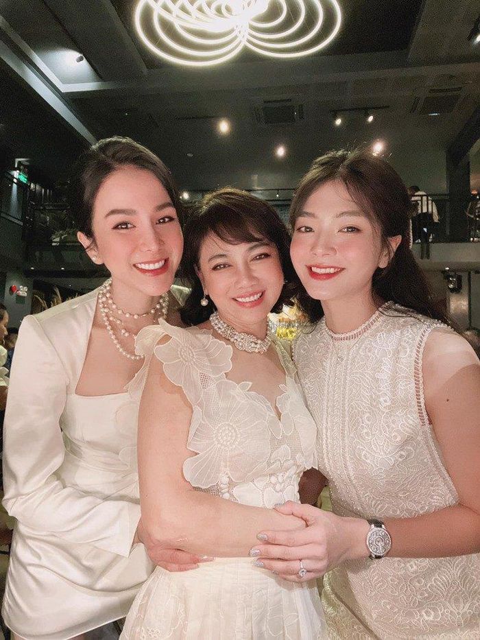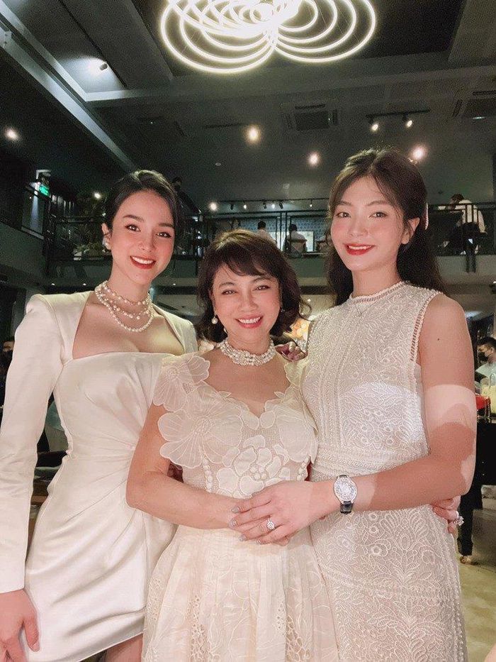 Cô đánh lẻ rủ mẹ chồng và em dâu "lên đồ" tông xuyệt tông màu trắng vô cùng xinh xắn. Cả nhà khoác lên mình những item thiết kế và trang điểm hòa nhã, ai nấy đều xinh xắn hết nấc.