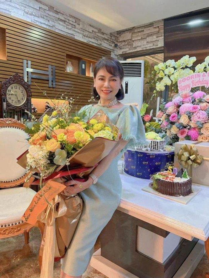 Sinh nhật mẹ chồng, Diệp Lâm Anh đã đến chung vui và tặng hoa cho mẹ. Bà ăn mặc rất giản dị và lựa chọn cho mình cách trang điểm, làm tóc phù hợp với trang phục cũng như bữa tiệc gia đình.