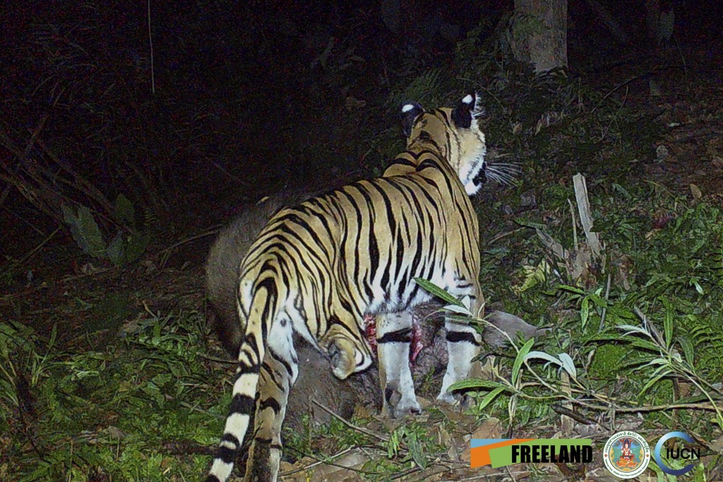Nhân viên của tổ chức bảo vệ động vật hoang dã Freeland phát hiện con hổ 3 chân vào đầu tuần này, sau khi xem video từ camera gắn trên một cái bẫy - đặt ở vườn quốc gia Khao Laem, tỉnh Kanchanaburi, Thái Lan. Trong camera, con hổ Đông Dương đi cà nhắc và di chuyển khó khăn khi tiếp cận xác của con trâu nước rạng sáng 7/2.
