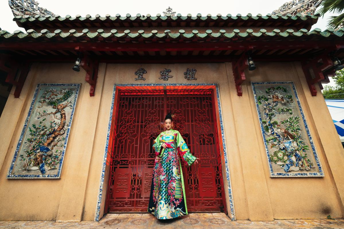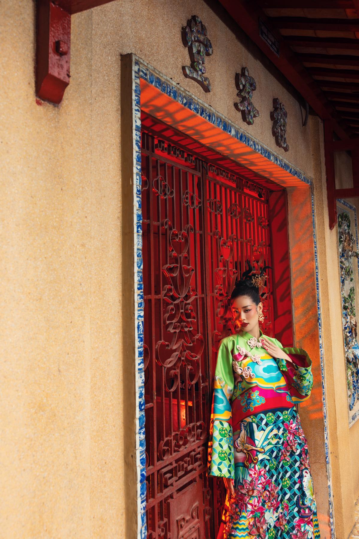 Ở concept đầu tiên, Hoa hậu Khánh Vân khoe dáng tại công trình kiến trúc cổ, hoạ tiết trên áo dài hài hoà với hoạ tiết của những bức phù điêu trên vách và mái ngói, tạo sự kết nối mang hàm ý bảo tồn, lưu giữ những nét đẹp truyền thống. Với khung cảnh này, Hoa hậu Khánh Vân chọn cách tạo dáng đơn giản, thể hiện hình ảnh cổ điển, duyên dáng của người phụ nữ Việt Nam từ bao đời nay.
