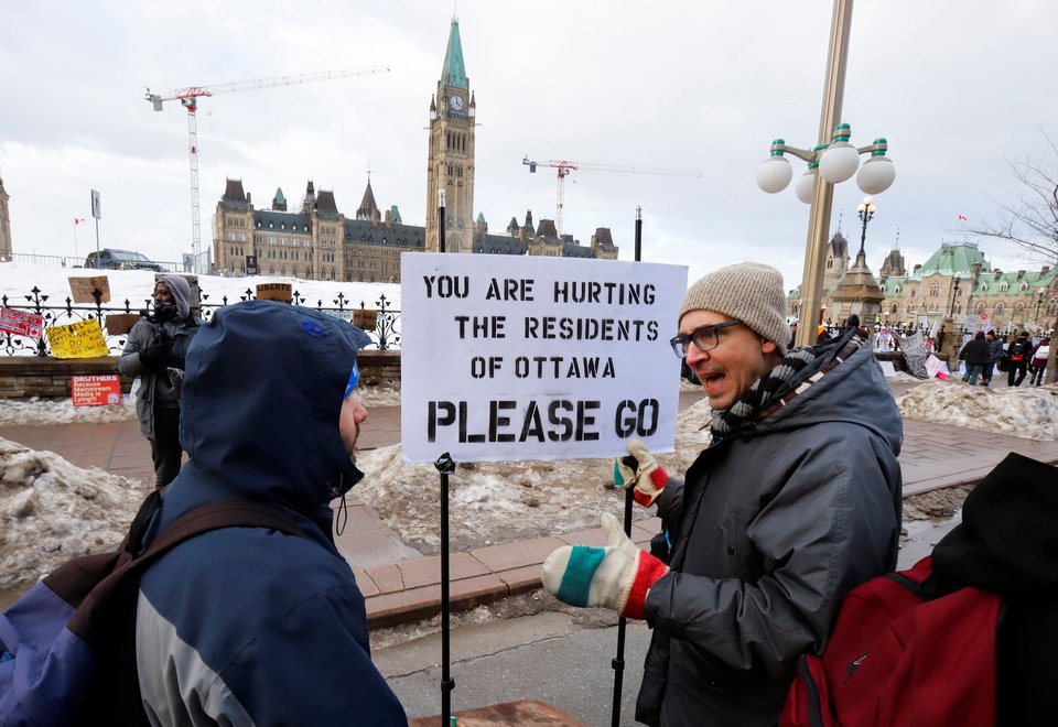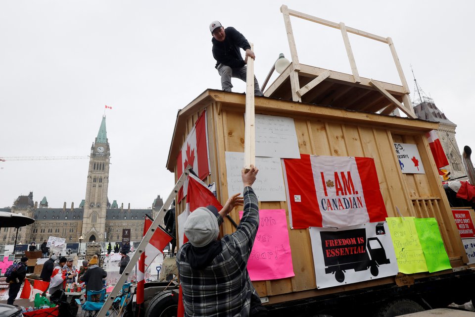 Sau hai tuần, cuộc biểu tình "Đoàn xe Tự do" vẫn tiếp tục làm tê liệt trung tâm thủ đô Ottawa, và lan sang nhiều thành phố khác ở Canada. Nhiều hãng ôtô lớn như Ford, Toyota,... buộc phải đóng cửa một số nhà máy ở Canada do gián đoạn chuỗi cung ứng. Ảnh: Reuters.