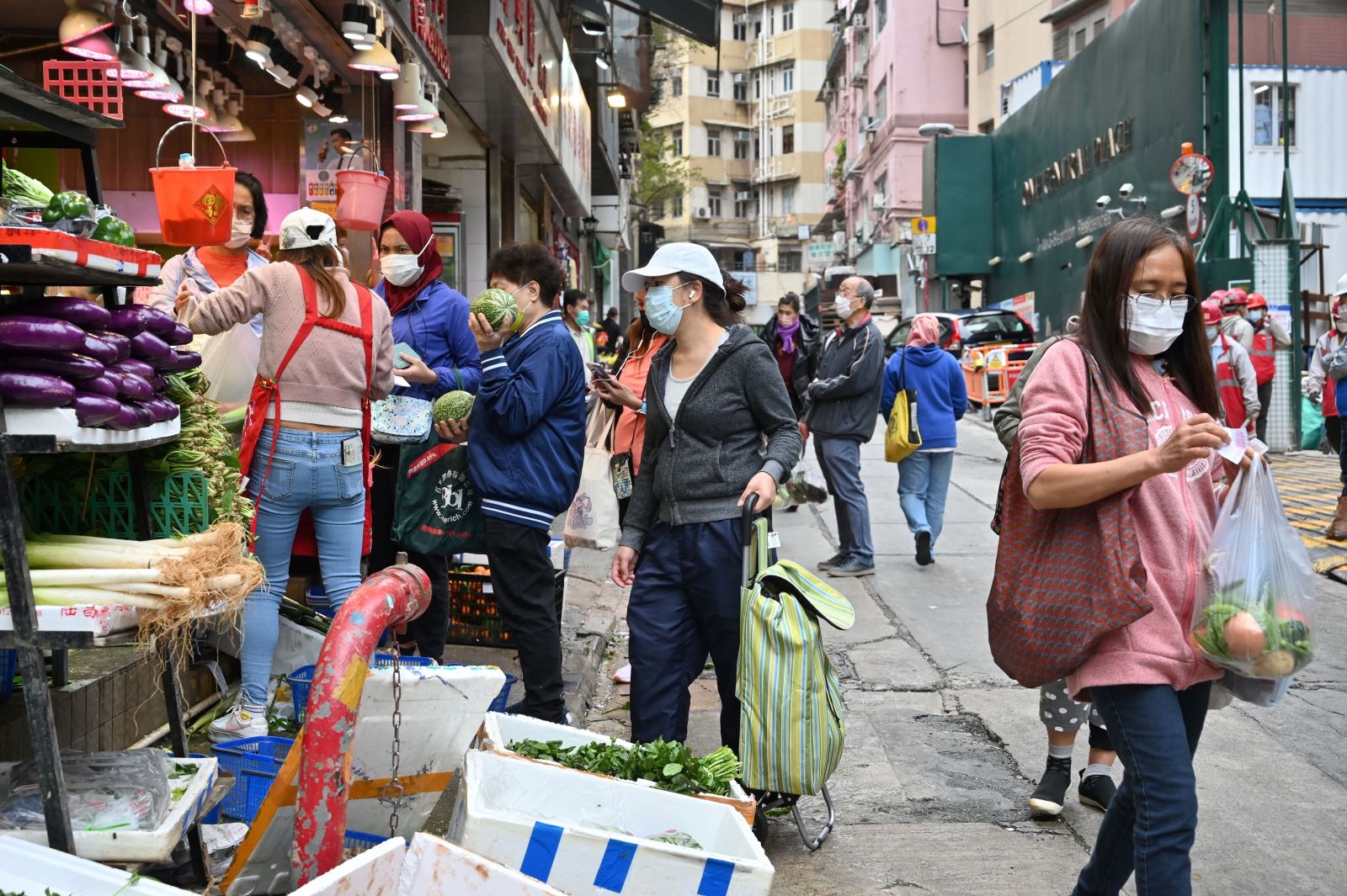 Người dân đeo khẩu trang phòng lây nhiễm COVID-19 tại một chợ ở Hong Kong, Trung Quốc, ngày 9/2/2022. Ảnh: AFP/TTXVN