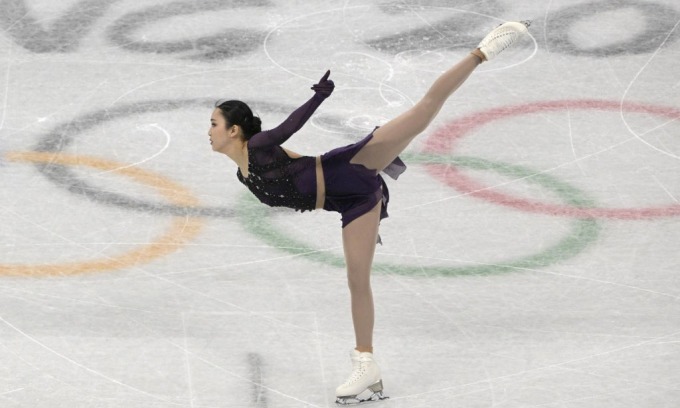 Vận động viên trượt băng nghệ thuật Trung Quốc Chu Nghị thi đấu hôm 6/2 tại Olympic Bắc Kinh. Ảnh: AFP.