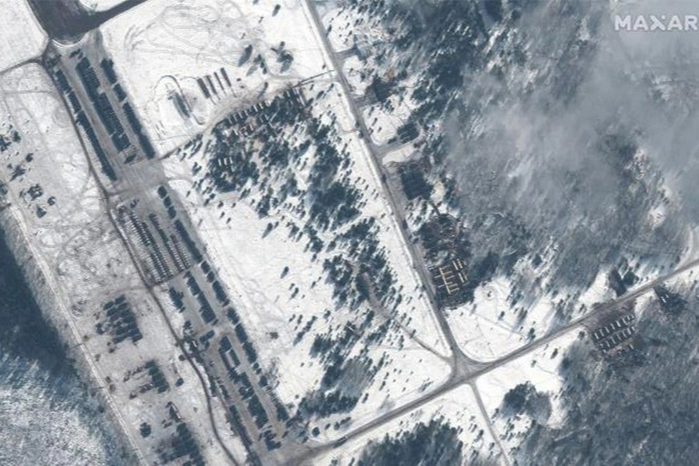Tại Belarus, nước láng giềng phía bắc của Ukraine, ảnh chụp vệ tinh của Maxar cho thấy các đợt triển khai binh sĩ, khí tài và trực thăng mới của Nga ở căn cứ không quân Zyabrovka, gần thành phố Gomel, cách biên giới Ukraine khoảng 25 km.