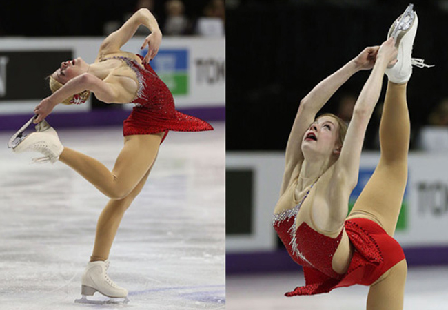 Nhiều nữ VĐV gặp sự cố về trang phục khi thực hiện cú xoay Biellmann.