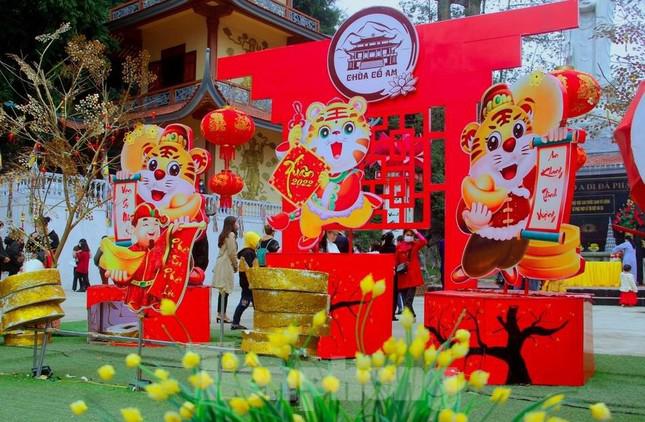Năm nay, hình tượng con hổ được trang trí nổi bật ngay trung tâm sân chùa
