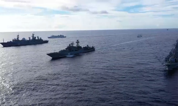 Chiến hạm Nga diễn tập giữa Thái Bình Dương hồi tháng 6/2021. Ảnh: BQP Nga.
