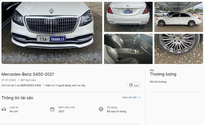 Cụ thể, ngân hàng này đang rao bán chiếc Mercedes Benz S450 đời 2021 đã qua sử dụng. Đây là tài sản được dùng làm tài sản thế chấp cho khoản vay phát sinh tại VIB, tuy nhiên, do khách hàng không thể tiếp tục chi trả nợ gốc và nợ lãi, ngân hàng đã tiến hành thu giữ để thanh lý thu hồi nợ.