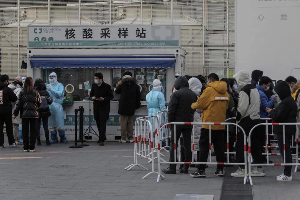 Người dân xếp hàng chờ xét nghiệm Covid-19 ở Bắc Kinh. Ảnh: EPA-EFE