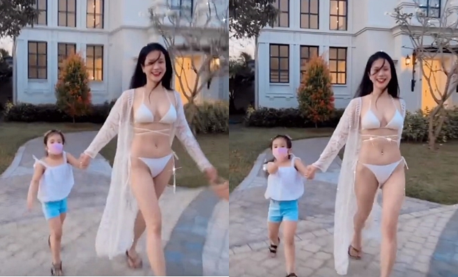 Mới đây, trên trang cá nhân, Diệp Lâm Anh có đăng tải đoạn video thu hút sự chú ý của người hâm mộ. Người đẹp diện thiết kế bikini dây chơi đùa cùng con gái. Ở tuổi 33 cũng như đã trải qua 2 lần sinh nở nhưng Diệp Lâm Anh vẫn giữ được hình thể đáng mơ ước.
