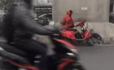 Thấy người này ngồi co ro một góc trên đoạn đường Cầu Giấy (Hà Nội), chị gái đã dừng xe, cởi chiếc áo dày xuống khoác lên vai người ăn xin. Dường như chưa yên tâm, người phụ nữ còn cẩn thận giúp người đàn ông lồng tay áo, đội mũ trùm kín đầu.