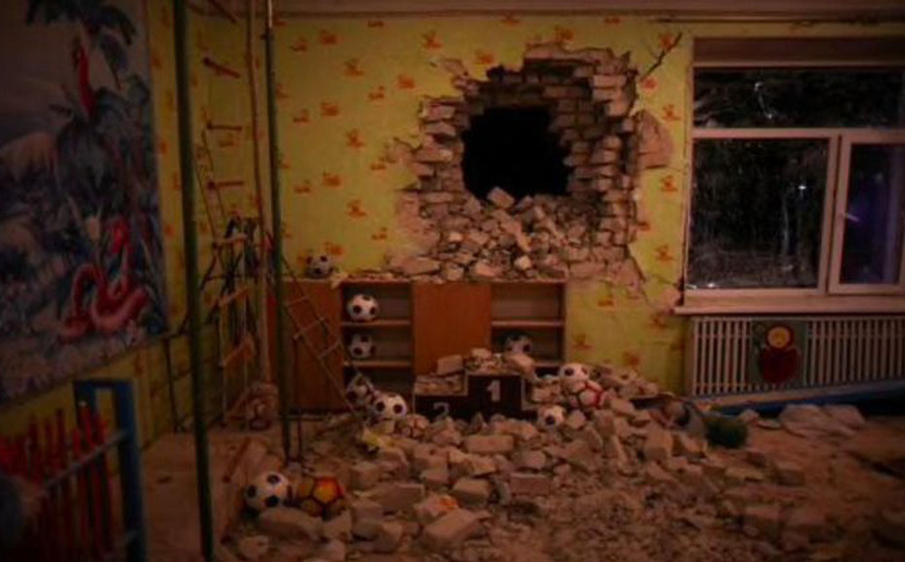 Tổng thống Ukraine Volodymyr Zelenskiy nói rằng lực lượng thân Nga đã nã pháo vào một trường mẫu giáo, và gọi đây là "một sự khiêu khích lớn".