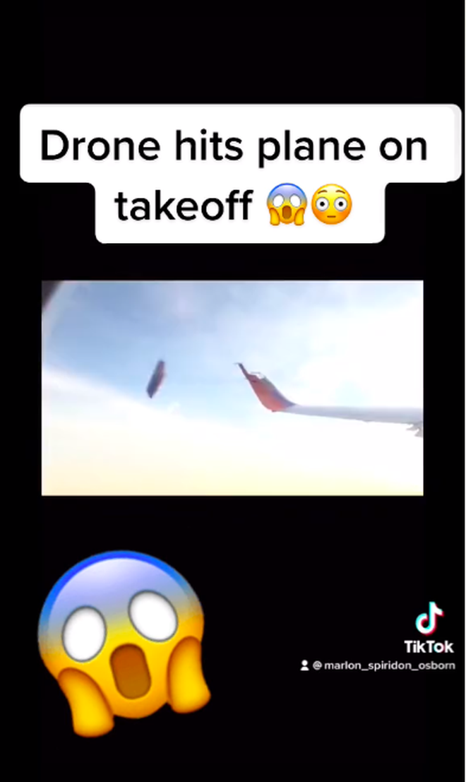 Theo đó, một chiếc drone (thiết bị bay không người lái) chẳng biết từ đâu bay tới va đập vào phần đầu của cánh máy bay. Kết cục là nó đã bị vỡ nát ngay khi đang cất cánh. Khoảnh khắc này khiến nhiều người xung quanh la hét thất thanh, trên máy bay cũng phát tín hiệu thông báo khẩn đến hành khách.