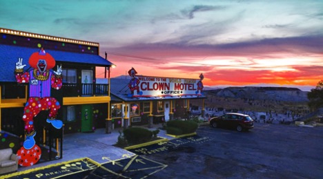 Nhà nghỉ Chú hề - The Clown Motel được hình thành vào giữa những năm 1980 bởi anh chị em Leona và Leroy David. Họ thành lập Clown Motel để trưng bày bộ sưu tập phong phú các kỷ vật về chú hề của người cha đã qua đời của họ. David và Leona lấp đầy hành lang với những bức tượng chú hề, trang trí mỗi phòng bằng những bức tranh chú hề và các phụ kiện khác cũng liên quan đến chú hề.