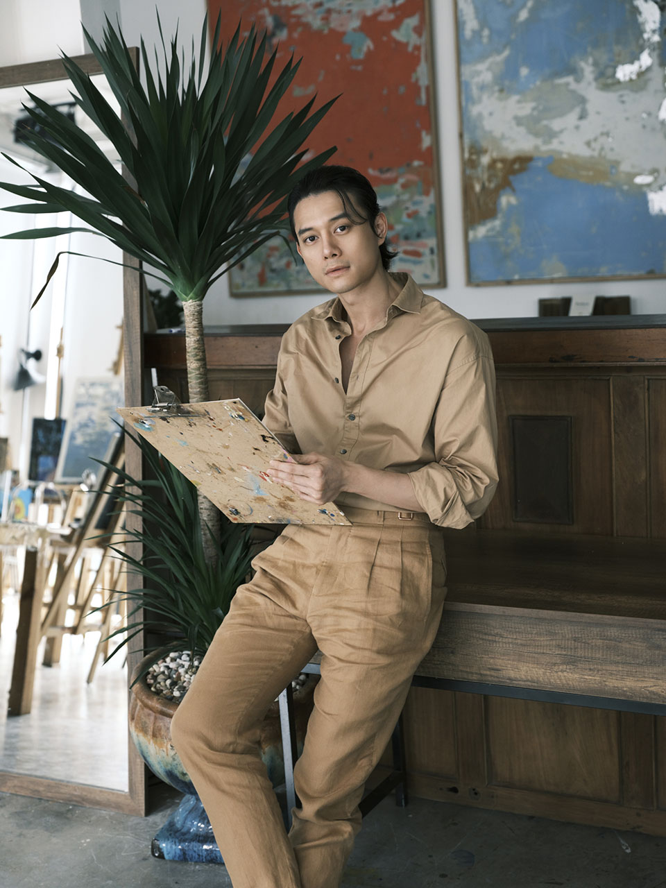 Diễn viên Nguyễn Anh Dũng vừa thực hiện một bộ ảnh nghệ thuật. Khác với hình tượng bảnh bao thường thấy khi xuất hiện tại các sự kiện giải trí hay những bộ ảnh khoe body 6 múi đầy nam tính, lần này anh tạo sự mới mẻ khi hóa chàng họa sĩ đầy lãng tử giữa không gian đậm chất hội họa. Hình tượng chàng thơ tự vẽ người trong mộng như khắc họa tính cách si tình, sống tình cảm, luôn quan sát và trân trọng cảm xúc của mọi người xung quanh của diễn viên sinh năm 1990.