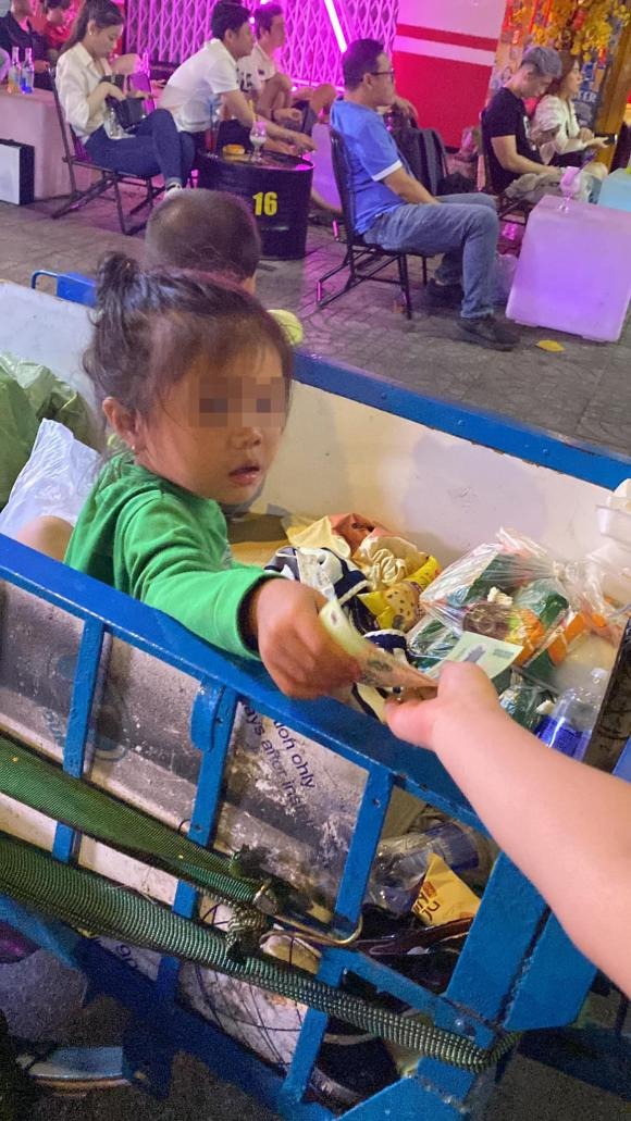 Em đi qua tiệm gấu bông này sáng rực em bảo: con thấy đẹp quá, mẹ nói: tháng nay học giỏi mẹ đưa đi mua. Rồi xe cúp lướt qua em bảo: mẹ ơi con muốn cho tiền hai bạn kia. Mẹ đã lướt đến cây xăng, đèn đỏ mẹ dừng xe rồi quay đầu vòng về phía Nguyễn Biểu thì bà và 2 bạn đó đã quay đầu qua cây xăng sang phía bên kia, mẹ lại vòng phát nữa đuổi kịp.