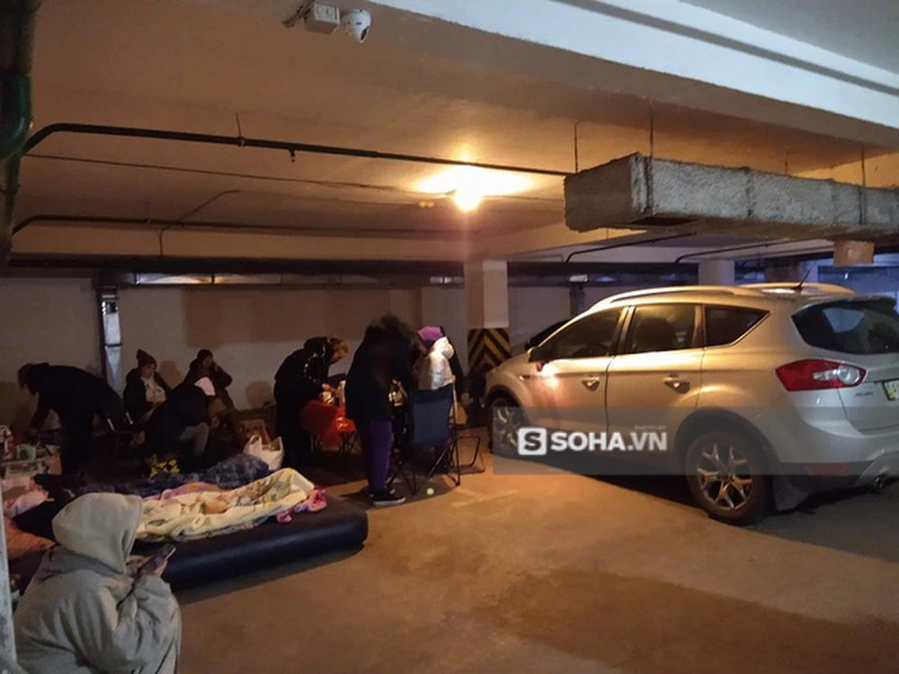Người dân ở Kiev sử dụng hầm để xe làm nơi trú ẩn. Ảnh: Nguyễn Quốc Hoàng.