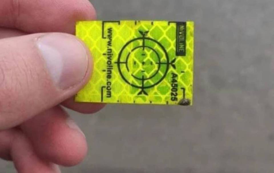 Một trong những tấm thẻ phản quang được tìm thấy ở nhiều địa điểm tại Kiev, theo chính quyền địa phương (ảnh: The Sun)