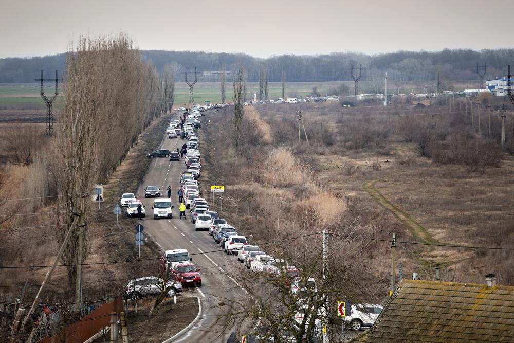 Dòng xe chờ đón người thân tị nạn từ Ukraine tại Palanca, Moldova ngày 2/3/2022. Ảnh: AP