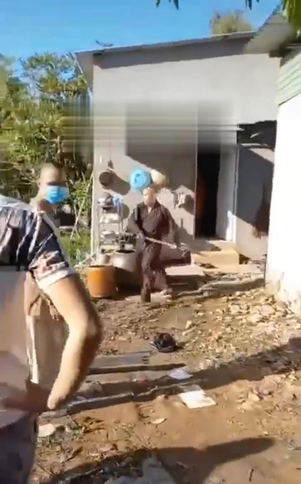 Thực tế, đoạn clip nói trên đã bị cắt ghép từ một clip gốc xuất hiện trên mạng vào tháng 12/2021. Người trong clip là một nhóm giả sư, do mẫu thuẫn tranh chấp đất với chủ hộ, người đàn ông mặc áo nâu đã cầm xà beng ra dọa.
