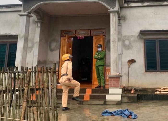 Sau khi sát hại con trai và chém vợ trọng thương, đối tượng cố thủ trong nhà đến khi lực lượng chức năng vận động ra đầu thú.
