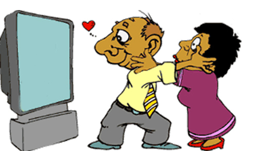 Hai vợ chồng đang ngồi xem chương trình trình diễn thời trang trên ti vi, đột nhiên cô vợ chỉ vào màn hình hỏi chồng: