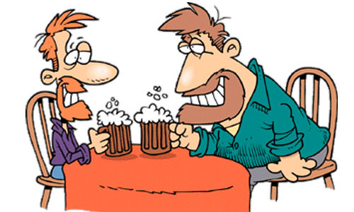 Hai người đàn ông nói chuyện với nhau trên bàn nhậu. Một người nói: