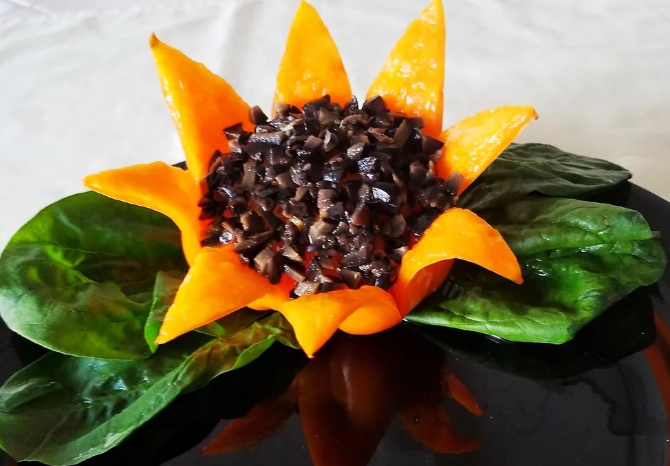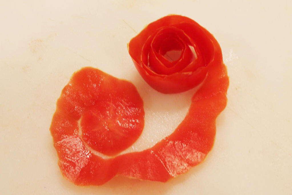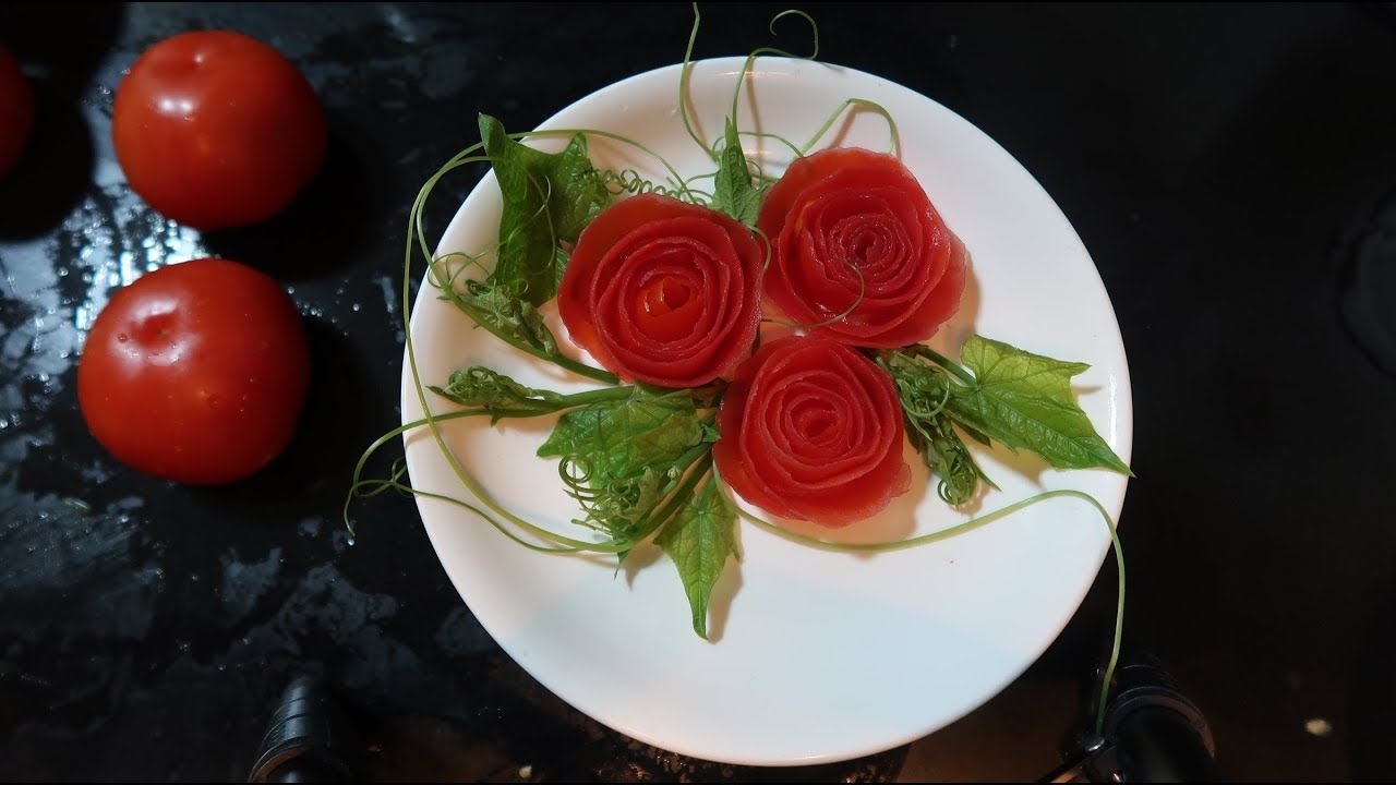 Hoa trang trí làm từ cà chua là ý tưởng tuyệt vời dùng cho các món khai vị, salad, cá và các món rau.