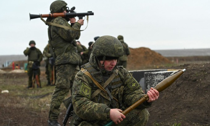 Binh sĩ Nga diễn tập chiến đấu tại vùng Rostov, miền tây nước này, cuối năm 2021. Ảnh: Reuters.