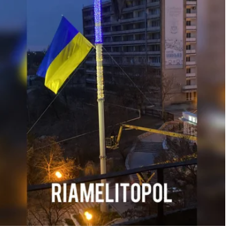 Quốc kỳ Ukraine ở quảng trường Melitopol bị hạ. Hiện tại, lá quốc kỳ Ukraine treo tại Quảng trường Chiến thắng ở thành phố Melitopol - nơi đang do Nga kiểm soát và diễn ra nhiều cuộc biểu tình trong những ngày gần đây - đã bị gỡ xuống.