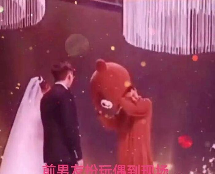 Được biết, người đàn ông mặc bộ đồ gấu bông chính là bạn trai cũ của cô dâu. Hai người yêu nhau sâu đậm được 2 năm nhưng vì lý do gia đình nên cuối cùng cả hai buộc phải chia tay.