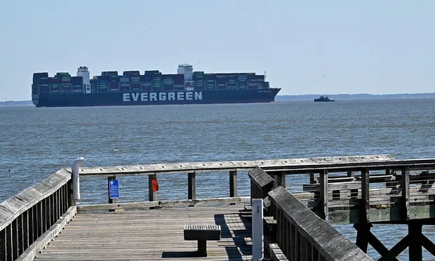 Một tàu container cỡ lớn. Tàu này thuộc sở hữu của công ty Evergreen Marine Corp đã bị mắc cạn gần cảng Baltimore của Mỹ. Đây cũng là công ty sở hữu tàu container MV Ever Given nặng 200.000 tấn bị mắc kẹt ở kênh đào Suez năm ngoái.