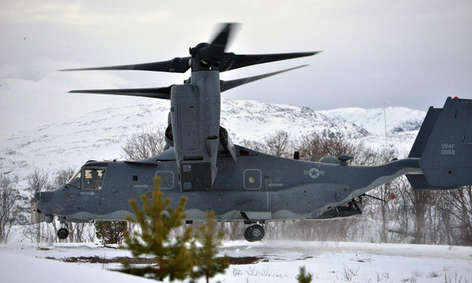 Trực thăng V-22 Osprey của Mỹ tham gia diễn tập tại Na Uy tháng 3/2020. Ảnh: USAF.