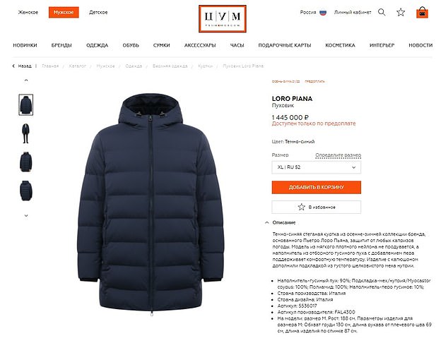 Tờ Daily Mail của Anh ngày 19/3 cho biết, ông Putin đã mặc một chiếc áo khoác đắt tiền của thương hiệu Ý Loro Piana vào tối hôm đó. Chiếc áo được được làm bằng chất liệu cashmere và bán tại Nga với giá 1.445.000 Rúp (khoảng 310 triệu VNĐ), gấp 25 lần thu nhập trung bình tháng của người dân nước này.