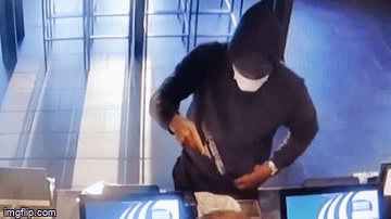 Tuy nhiên chỉ đi được vài bước thì 2 chiếc túi giấy đựng tiền kia bỗng bục ra, những xấp tiền bắt đầu rơi tung tóe khắp sàn nhà khiến cho tên cướp bối rối. Loay hoay một lúc hắn vội vàng nhặt lại và cho mớ tiền vào cái túi nilon màu trắng.