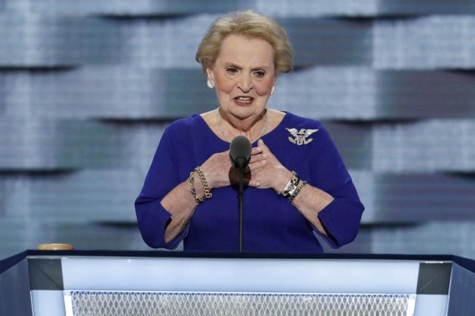 Cựu ngoại trưởng Mỹ Madeleine Albright phát biểu trong ngày thứ hai Hội nghị Quốc gia đảng Dân chủ tại Philadelphia, ngày 26/6/2016. Ảnh: AP