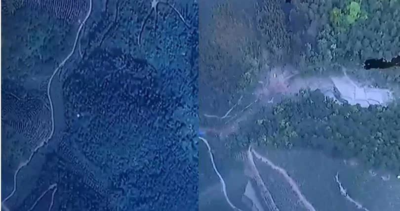 Hình ảnh chụp vệ tinh cho thấy khu vực rừng núi đang xanh tươi đã bị hủy hoại nặng nề sau khi máy bay rơi xuống