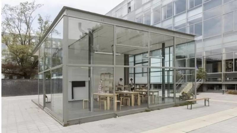Tiệm nail được xây dựng trong một không gian bằng kính tọa lạc trong Học viện Nghệ thuật Rietveld nổi tiếng của Amsterdam