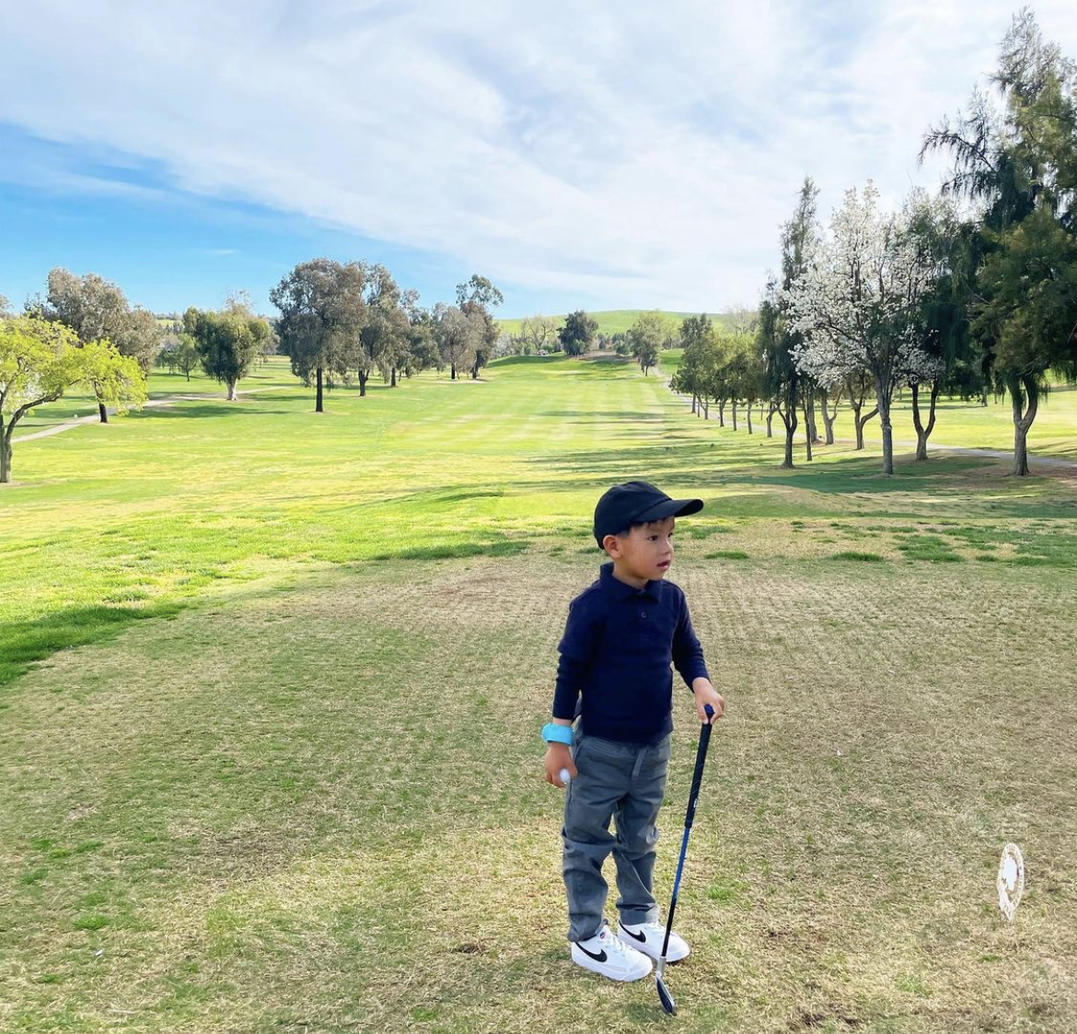 Con trai Phạm Hương thường xuyên xuất hiện trên golf để check in