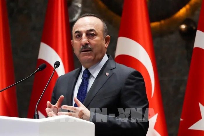 Ngoại trưởng Thổ Nhĩ Kỳ Mevlut Cavusoglu phát biểu tại cuộc họp ở Ankara ngày 4/2/2020. Ảnh: AFP/TTXVN