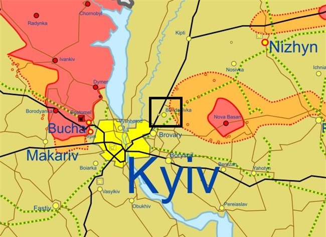 Khu vực tập trung lực lượng VDV của Nga ở đông bắc Kiev.