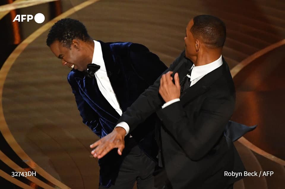 Ngay lập tức Will Smith đã lên thẳng khán đài và đấm thẳng mặt Chris Rock tại Oscars khi nghe thấy nam diễn viên này bình luận chê bai ngoại hình vợ mình là Jada Pinkett Smith. Được biết, vợ của Will Smith bị mắc chứng rụng tóc nhưng Chris Rock đã lấy điều đó ra để giễu cợt. Will Smith còn hét lớn: "Keep my wife's name out of your f*cking mouth" (tạm dịch: Đừng có nhắc tới vợ của tôi). Đáng chú ý, phóng viên New York Times Kyle Buchanan khẳng định khoảnh khắc này không có trong kịch bản, tuy chưa biết đây có phải là đùa hay không.