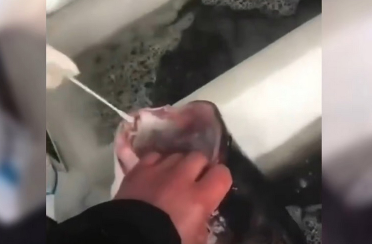 Trong đoạn video, người bán cá cố giữ cho miệng con cá mở rộng trong khi nhân viên ngăn ngừa COVID-19 nói: “Đừng để con cá trượt khỏi tay anh”. Người bán cá đáp: “Đừng lo lắng, nó sẽ không cắn đâu”.
